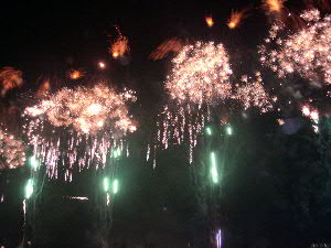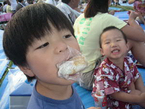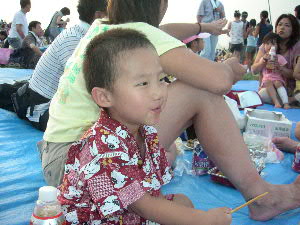 | 8月6日(日) 今年もやって来ました〜 江戸川花火大会♪ 今年の花火大会はダイチ君ファミリーから お誘いを頂き、チャッカリ便乗させて頂きました ご招待券を持っていましたが、場所は指定席ではないので、 昨日の夜19時から並んだそうです(汗) いや〜感謝・感謝でございます。 しかし、人・人・人・・・ 子供達の笑顔はヤッパリいいですね☆ ↑ダイチパパ いつもすみません。 辺りも暗くなり、打ち上げ時間が近づいてくる♪ そして、我が江戸川区長 多田正見のいつもの挨拶! 「目には花火!心に友情!手にビール!カンパ〜イ!!」 の掛声の後、待ちに待ったカウントダウン!!!! 10・9・8・・・・・・・・・・・3・2・1・0! チョ〜ど迫力!! BGMに合わせてガンガン花火は上がる! やっぱり目の前で見る花火は最高♪ 携帯電話で撮ったムービーです。 ↑お暇な方はクリック^^ ご覧になるには、Windows Media Playerが必要です。 必要な方はこちらからダウンロードしてください。 時間はアッ!という間に1万4千発の花火が打ち上げ終了! もっと見ていたかったな〜 楽しい時間を過ごす事が出来ました。 絶対来年も目の前で見た〜い☆ チャンチャン♪ |