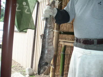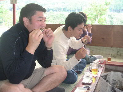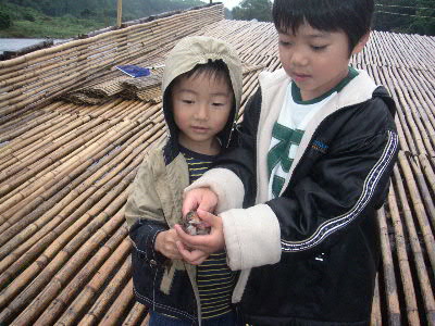 | 10月10日(月) 草野球チームRESSCO(レッスコ)の後輩から「やな!行って見た〜い♪」 とオファーが!(爆) では、鮎食い倒れツアーを計画し、 またまた黒羽観光やなに行って来ました。 10時30分に東北道上河内パーキングで待ち合わせ♪ なのに僕は・・・9時15分過ぎに自宅を出る・・・(汗) あいにくの空模様・・・雨もポツリポツリ・・・ 高速は渋滞もなくスイスイ飛ばし・・・10時35分上河内パーキングに 無事到着♪ 皆と合流し、矢板インターを降りて30分!裏道を通り黒羽観光やなに到着♪ やなに到着してイキナリビビッタ!! でかい魚が・・・・ん??・・・・鮭?? オオオオオ〜〜〜〜〜〜鮭じゃん! デケー!60UPはある! 鮭の写真を撮影しようとデジカメを準備! 撮影をしようとしたら・・・あれ??鮭がいない・・・幻?? なんと、お店の方が鮭を持っていってしまったとの事。 写真が撮れなくて残念・・・ 気を取り直して鮭、イヤイヤ鮎が掛かるのを待つ事数分。 早速、鮎2匹GET^^ ↑左 メケオの息子 ショウタ君 子供って、すぐに仲良くなりますね^^ その結果・・・ハシャグハシャグ(笑) ↑今日は渋いな〜(爆) ↑オイオイ!早く箱に鮎を入れなさい!!! ダイキもショウタ君もビショビショ。 あ!鬼嫁の顔が・・・(汗) ↑左から、岡本&高橋カップル・内島君・メケオファミリー ん〜 笑顔が良いですね〜♪ あ!岡本君・高橋さん、ご結婚?あ!婚約おめでとうございます♪ おじさんは、知らなかったよ〜 十分?川遊びをし、待ちに待った鮎を食べる事に 今回は秘密兵器を! パンパカパーン♪新聞紙! 風除けがないので火力が強い所と弱い所があるので、 鮎を囲むように新聞紙を置き、均等に焼けるようにする! あ!このやり方は、常連さんから聞きました(爆) ちなみに、子供の長靴は乾きませんでした(汗) ↑頼むぞメケオ!焼き奉行^^ で、子供達はと言うと・・・ ↑パパまだ?? ↑まだだYO〜! お腹すいたYO〜! ハ〜イ♪ 鮎解禁だよ〜(爆) 皆、食べろ食べろ! 皆、「ウメ〜エ・ウメ〜エ」の連発! 連れて来たかいがあったもんだ。 ↑鮎を見つめて・・・・鮎って美味いんっすね!だって^^ ここで、鮎刺しも登場! 写真を撮ろうとしたらダイキが一人でパクパクパク・・・ 写真を撮らないで鮎刺し終了(T T) ま!それほど美味いって言う証拠ですね(笑) 更に、黄金に輝く鮎釜飯が登場!! おい!ダイキ!!お茶碗が2つ足らないからお店の人にもらって来て! とダイキにお願いするとオイラのサンダルをはきダッシュ! お茶碗をもらって来て更にダッシュ! で!案の定・・・・ 大転倒(爆) 皆で爆笑しながら食べまくる^^ やっぱり皆でビールを飲む・・・イヤイヤ、鮎を食べるのは最高っす! 食事中、突然店の方がデカイ魚を持ってきた! ん?鮭じゃん!! さっきの鮭ではなかった。 お店の方に聞いてみると「1日、6・7匹鮭が捕れるよ! 朝方が一番捕れるね!」との事! では、次回は朝マズメに来て鮭をGETしよう! まてよ・・・・・・鮭って持って帰っていいのかな〜?(爆) 皆で、タラフク飲み&食った! お店のお嬢様??とお友達になり??10%引き! ん〜最高(爆) いや〜 何度行っても「やな」はいいですね♪ 帰りは、ショウタ君を矢板インターまで預かり、 ダイキとショウタ君はなにやらヒソヒソ話! ダイキ 「ね〜!ショウタ君、うちに泊まりにおいでよ!!」 ショウタ「うん!行く!」 ダイキ 「アッ!そうだ!今日おうちに来て遊ぼうよ!」 ショウタ「うん!行く行く!」 ダイキ 「いいでしょ!トーちゃん」 オイラ 「うん!」 オイオイ^^ その場しのぎの嘘を・・・ 二人ともルンルン^^ 矢板インターでショウタ君とバイバイするとダイキの反撃が!! 「トーちゃんの嘘つき!!ショウタ君がうちに来て良いって言ったじゃん!」 と泣きながら暴れる(汗) 5歳となると嘘はいけませんね・・・反省・・・ チャンチャン♪ |
